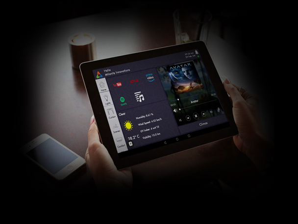 Milan Aurum is Milanity's premium digital living Infoway. It draws on time-tested and proven hardware while adding additional levels of control and intelligence. It is ideal for integration and control of devices in large homes. It has a 64-bit processor to enable fast response and built-in power backup.